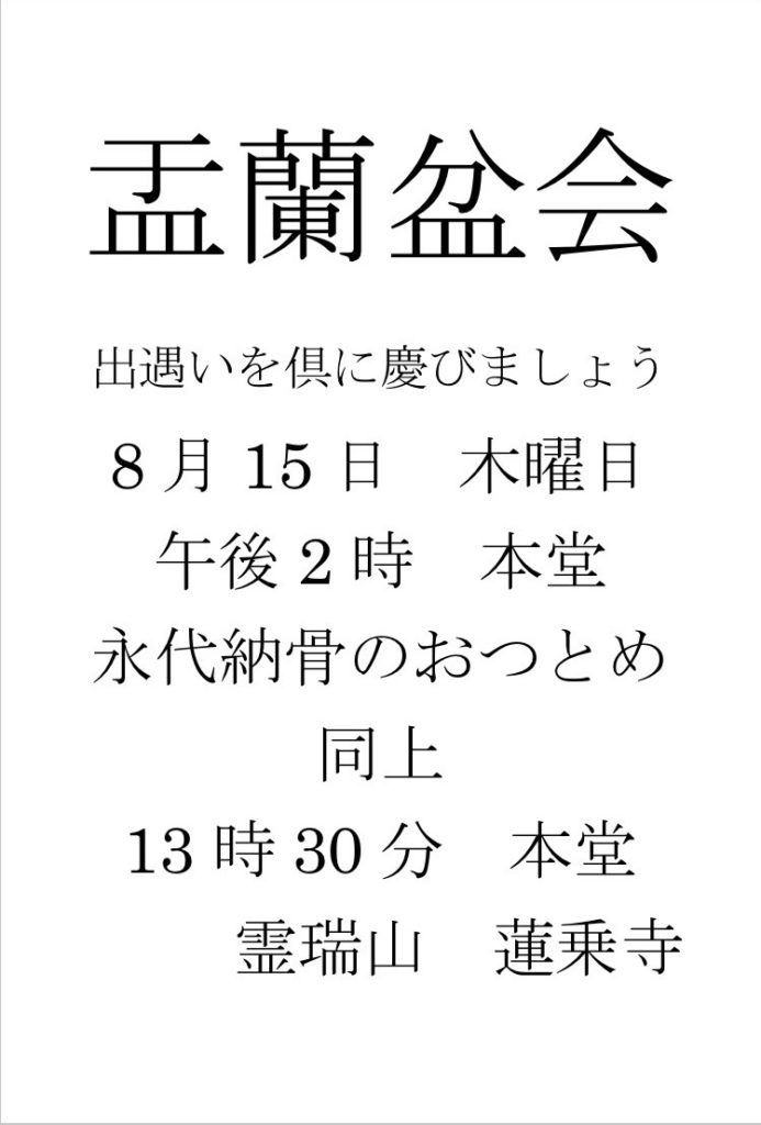 2024年8月4日 夏祭りのお知らせ 2024年8月11日(日曜日)山の日 蓮乗寺境内にて夏祭りを開催いたします。 18時〜開門 19時〜盆踊り開始 20時〜抽選会 ※抽選券は盆踊りを踊ってくださった方にお配りいたします。 ※※当日駐車場のご用意はございませんので予めご了承ください。 どなた様も奮ってご参加下さいませ。 Screenshot