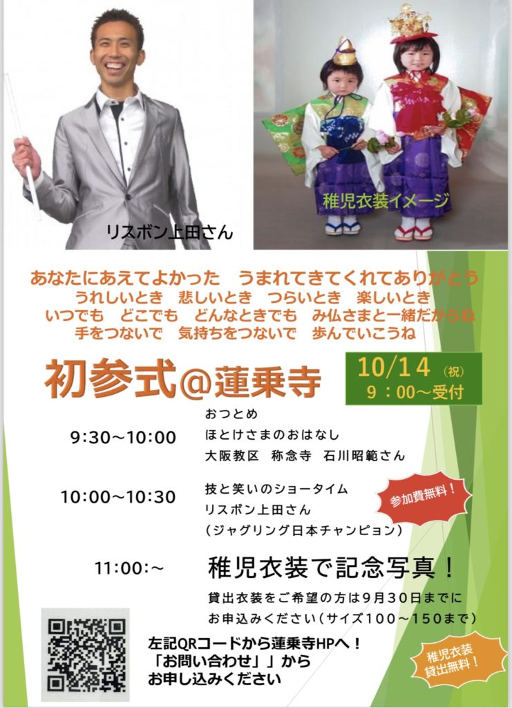 蓮乗寺本堂及び境内にて初参式を開催いたします。皆さま奮ってご参加くださいませ。