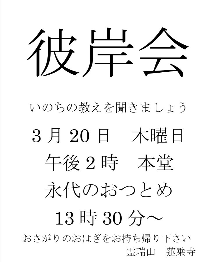 彼岸会法要を開催いたします。